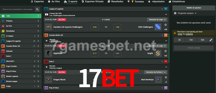 A aposta 17Bet oferece aos jogadores a experiência mais conveniente de apostas em eSports!